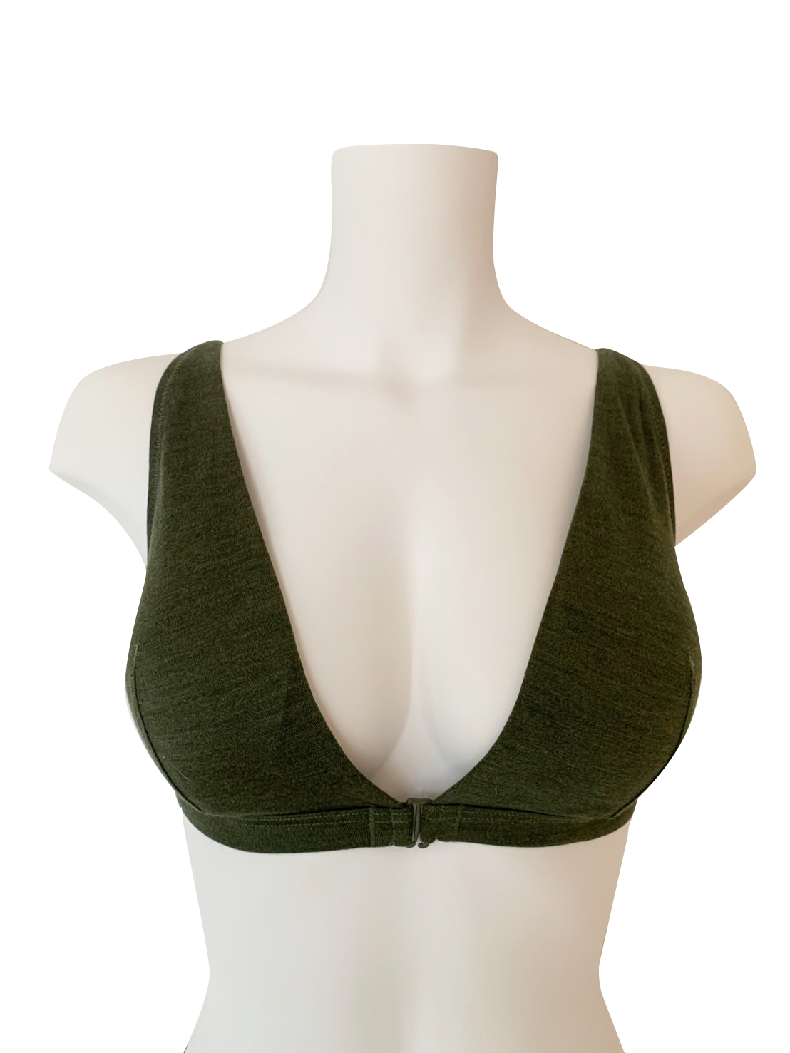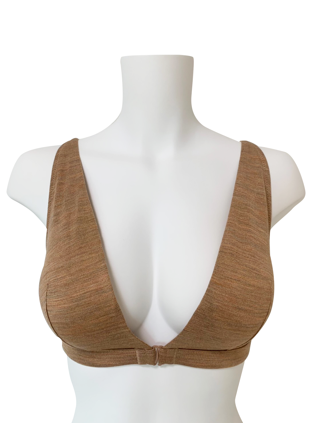 背面を伸縮性のあるクロスしたストラップにする事で金具はフロントホックのみを可能にしました。