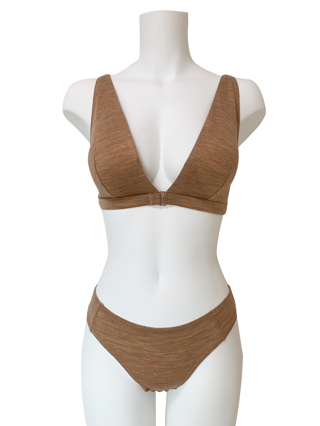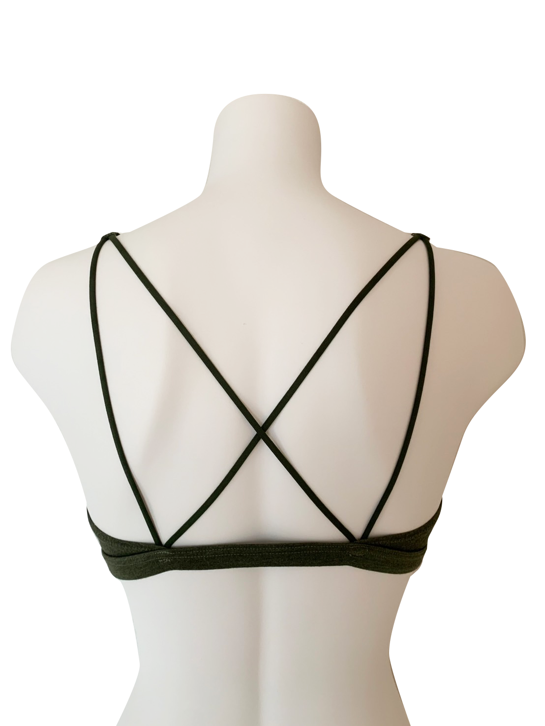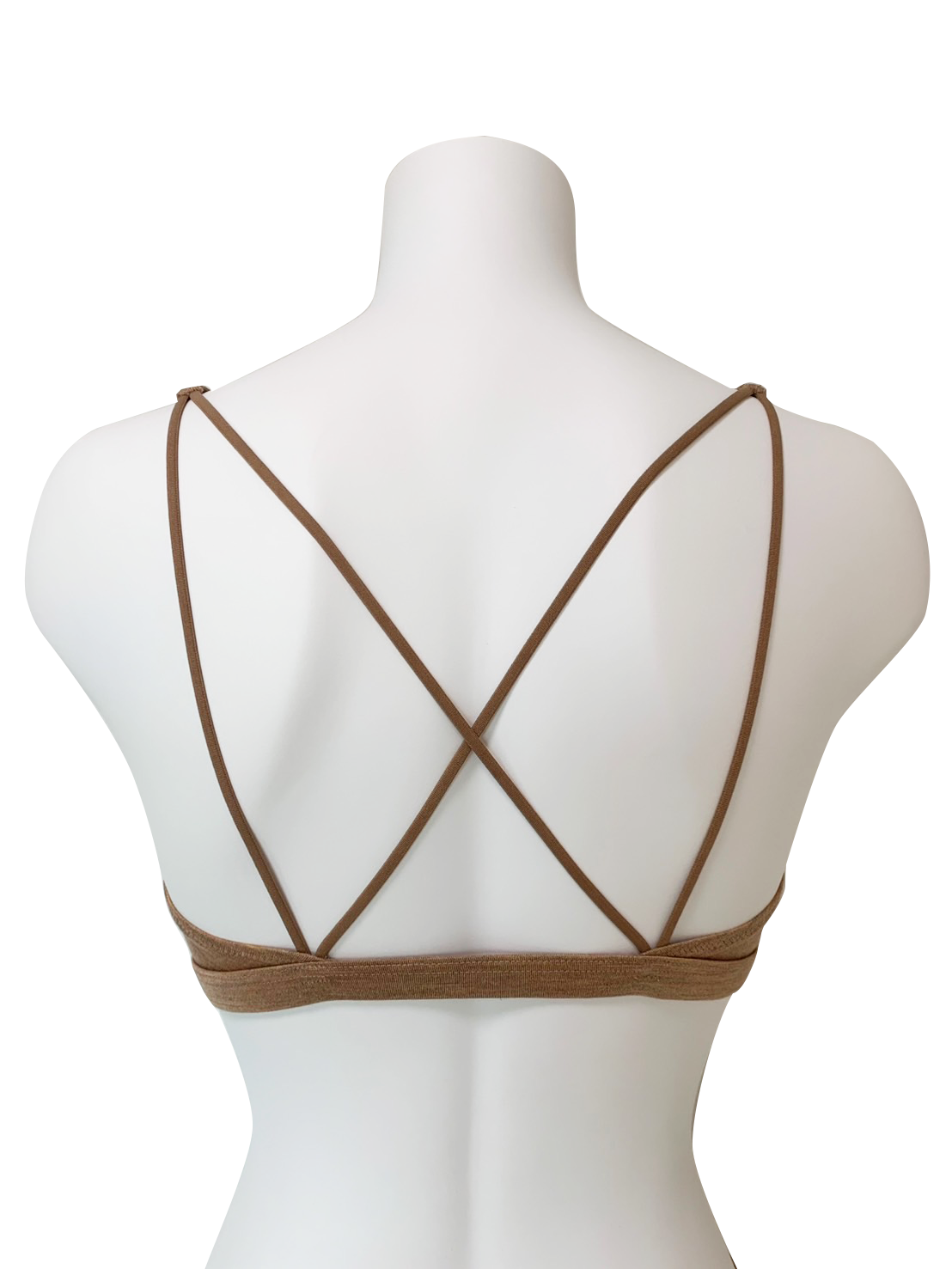 背面を伸縮性のあるクロスしたストラップにする事で金具はフロントホックのみを可能にしました。